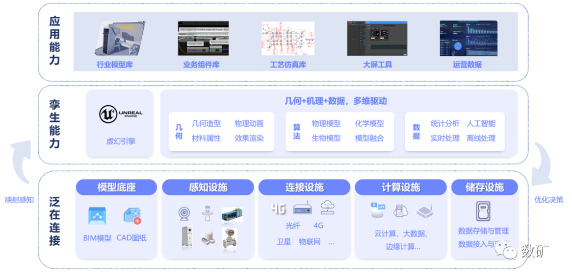 孿生能力基于對物理實體的數字化表達,以歷史數據、實時數據為基礎,融合幾何、機理、AI等多種數學模型,結合VR、AR技術實現對物理對象的映射呈現、分析優化、診斷預測以及閉環控制。