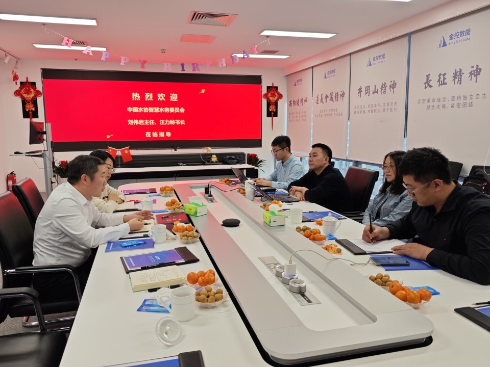 近日,中國水協智慧水務專委會劉偉巖主任、汪力秘書長等領導蒞臨金控數據考察調研,金控數據董事長楊斌及公司高管團隊熱情接待。