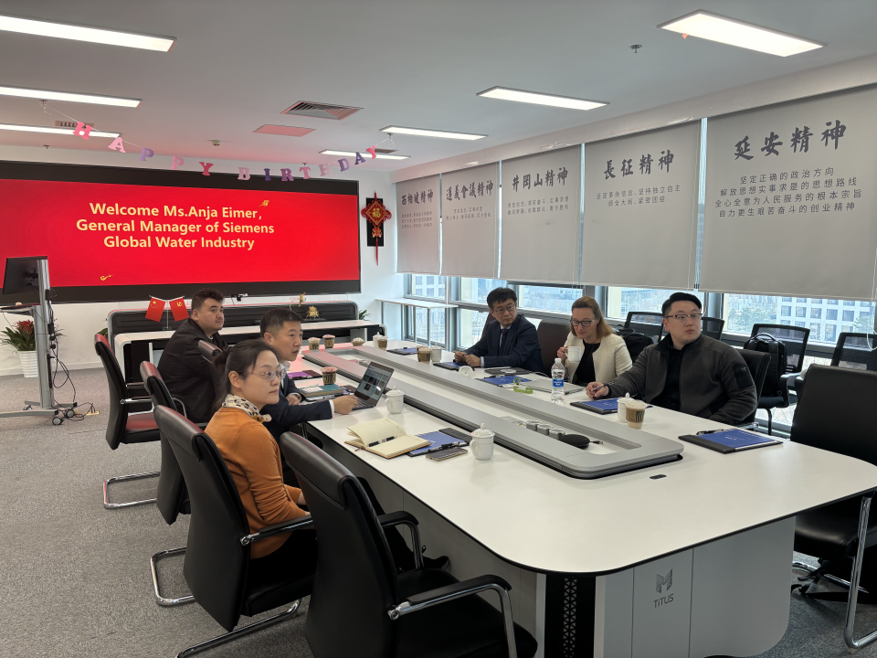 2024年3月,西門子全球水工業(yè)總經(jīng)理Anja Eimer女士攜國(guó)內(nèi)團(tuán)隊(duì)拜訪金控?cái)?shù)據(jù),圍繞國(guó)內(nèi)外水務(wù)行業(yè)數(shù)字化、智能化技術(shù)進(jìn)行了深入的交流與探討。
