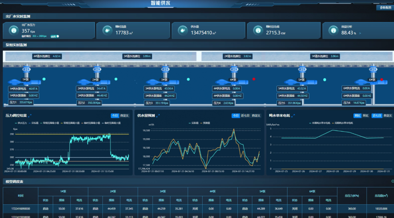 北京金控數據技術股份有限公司的智能泵組控制系統是一款突破性的技術產品,它專為解決給水廠在傳統控制方式中遇到的依賴人工經驗及受外部因素影響導致的壓力波動問題而設計。智能泵組控制系統通過精準計算和智能算法,動態自動完成泵組的調度,顯著減少調度人員的工作強度。系統能夠輸出供水量預測值,實現取水與供水調度的高效協同,確保供水過程的連續性、穩定性,同時降低能耗,提高系統的可靠性和效率 。